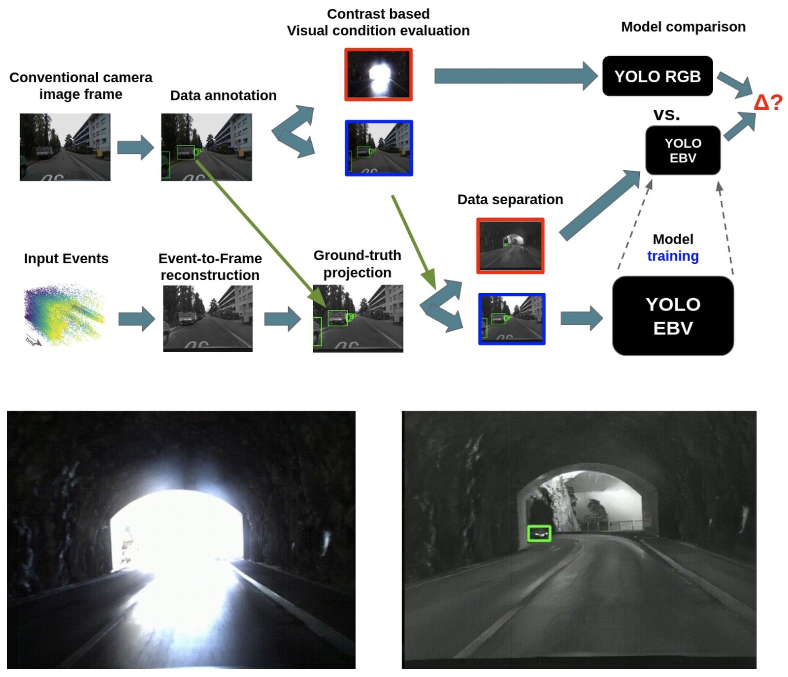 Conventional frame-based cameras are commonly used in the automotive industry for tasks like object detection, lane keeping, and obstacle avoidance. However, they struggle in difficult conditions such as rain, fog, snow, or intense glare, due to limitations like low dynamic range, motion blur, and high latency. These issues make them less reliable in critical situations involving high speed or poor visibility. Event-based vision sensors offer a promising alternative. Inspired by biological vision, they capture changes in brightness at the pixel level with microsecond latency and very high dynamic range. This makes them well-suited for high-speed and high-contrast environments where traditional cameras often fail. In this project, we explore how event-based vision can improve perception in challenging weather and lighting conditions. By comparing them with conventional cameras, we evaluate their potential to increase safety, and maintain performance in visually degraded environments.